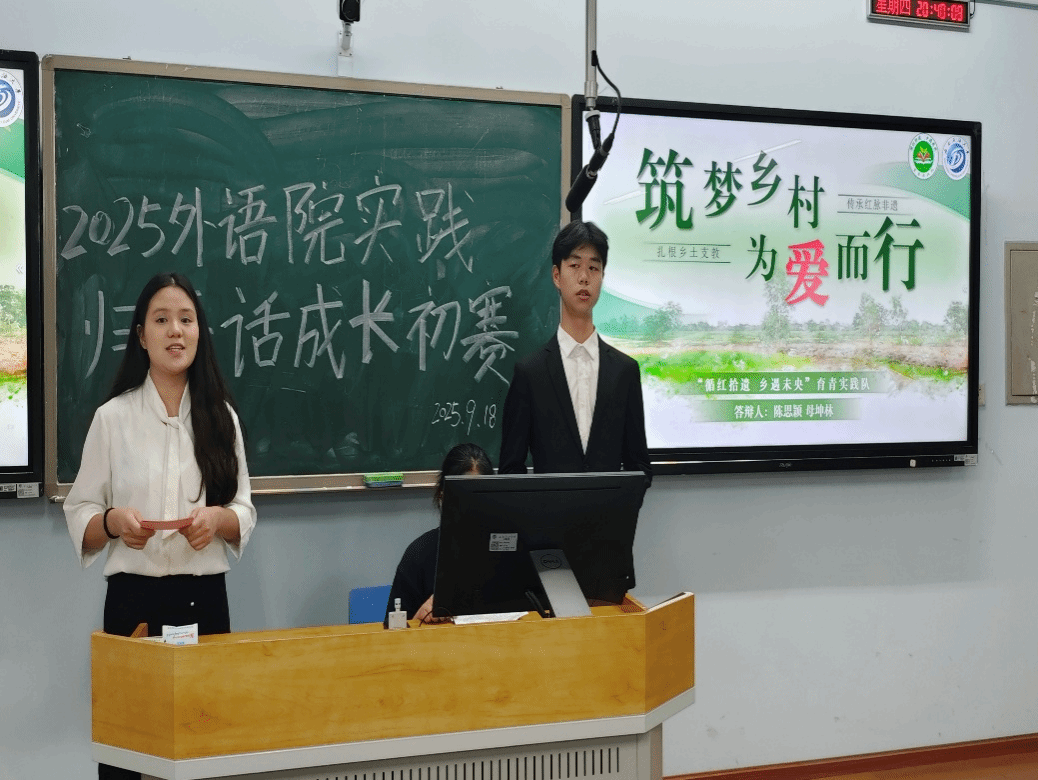 整場匯報亮點紛呈,既展現了外語學子扎實的專業素養與服務社會的責任意識,也體現了同學們將理論知識與現實需求相結合的能力。本次活動不僅是對今年暑期“三下鄉”社會實踐工作的階段性總結與復盤,更是對青年學生了解國情民情、錘煉意志品質、提升綜合能力的集中檢驗。經現場評審,最終十支優秀團隊脫穎而出,成功晉級學院決賽。這些團隊的項目既精準回應了鄉村發展中的現實問題,也在支教服務、文化傳播、產業助力等方面形成了可復制、可推廣的實踐模式,為全院學生樹立了優秀的實踐榜樣,也為學院進一步推進實踐育人工作、培育優質實踐項目奠定了堅實基礎。