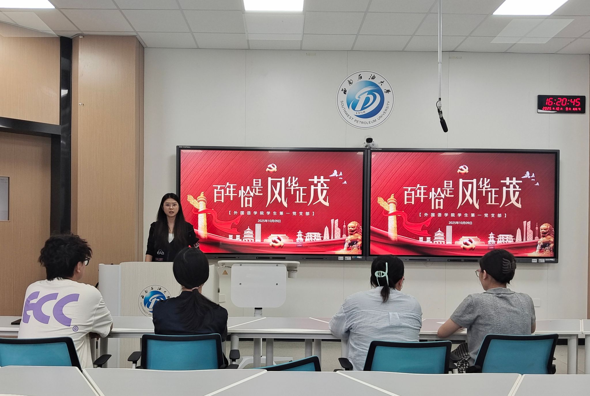 為深入推進黨史學習教育,傳承黨的優良傳統,10月9日下午,外國語學院學生第一黨支部在思學樓A110開展以“百年恰是風華正茂”為主題的黨組織生活會。會議由黨支部書記李飛主持,支部全體黨員參會。
