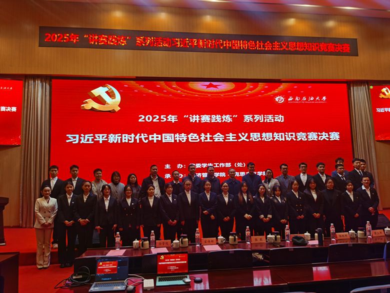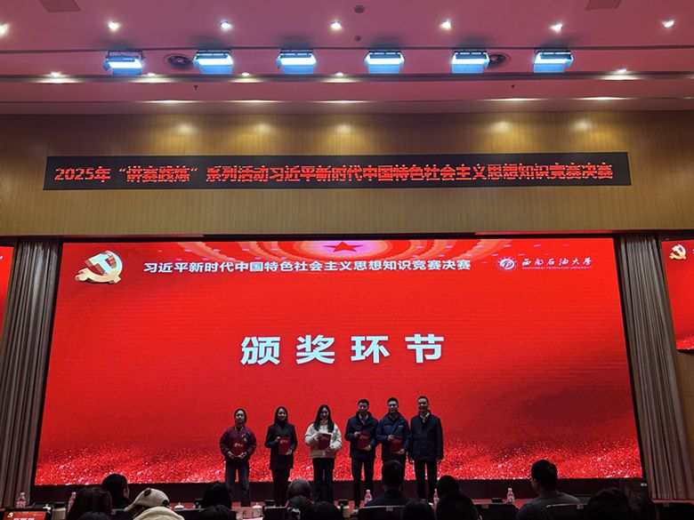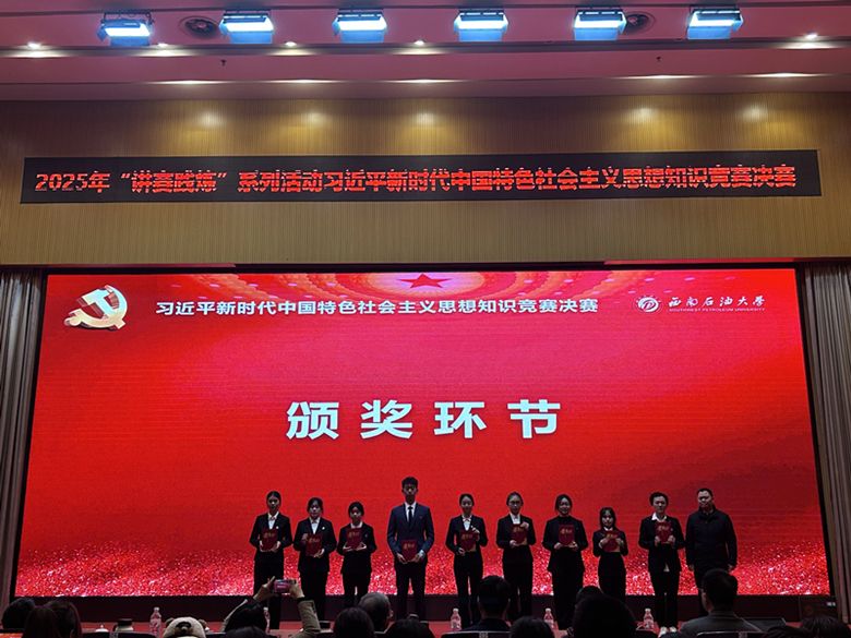 11月25日晚,西南石油大學2025年“講賽踐煉”系列活動——習近平新時代中國特色社會主義思想知識競賽決賽圓滿落幕。經過多輪角逐,外國語學院“語通天下隊”憑借出色的綜合表現,獲得決賽一等獎,充分展現了外語學子扎實的理論素養和昂揚的精神風貌。