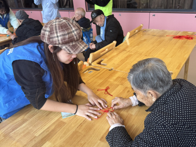 本次活動的亮點之一是傳統文化體驗環節。志愿者們手把手帶領老人編織中國結、學習剪紙,指尖流轉的不僅是傳統技藝的魅力,更是兩代人之間的情感交流。活動過程中,志愿者們還為老人送上親手準備的圍巾、香包等小禮物,細微之處盡顯關懷與心意。