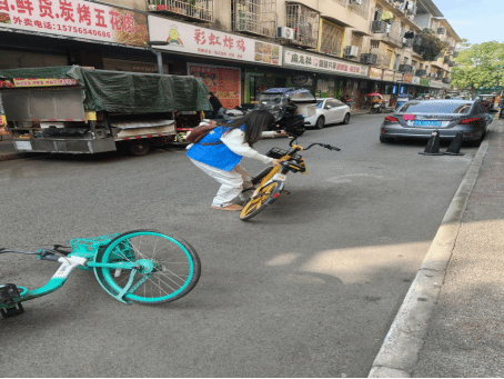 圖 2:志愿者整理亂停放的共享單車