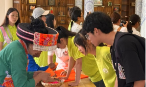 深化文化研學,賡續精神血脈。兩支隊伍分別聚焦民族文化與非遺文化傳承,推動紅色基因與傳統文化深度融合。“吾言落鴻,語進苗鄉” 實踐隊聯合四川護理職業學院學子走進苗族博物館,探尋古老銀飾、民俗器物中的民族智慧,體驗苗繡技藝,在指尖傳承中感悟中華民族多元一體的文化魅力;育青實踐隊深入中江縣掛面村,向非遺傳承人學習手工掛面 “發酵 — 和面 — 上架 — 晾曬” 全流程技藝,收集豐富文化素材,讓非遺技藝中蘊含的工匠精神與紅色基因相得益彰。