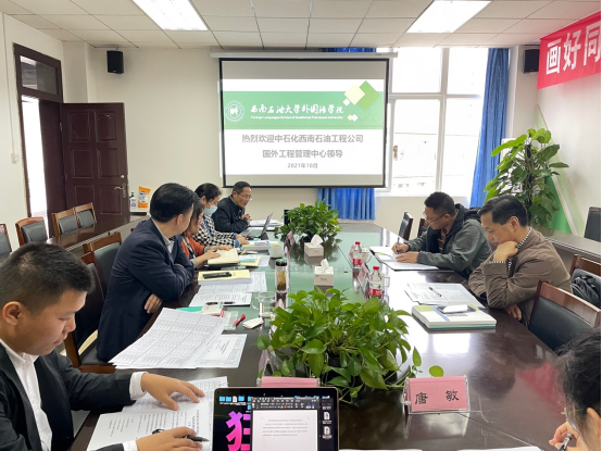 2021年10月26日下午四點半,中石化西南石油工程有限公司沙特項目集中強化培養班實地考察交流會議在思學樓AB406順利召開。