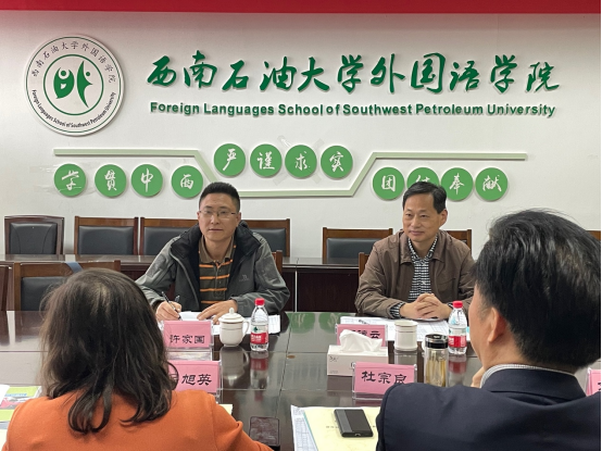 之后,雙方領導再次進行了交流與討論。外國語學院書記杜宗良就此項目做補充說明,強調了服務意識和質量意識,并表達了對此次培訓的重視程度。西南石油工程公司國外工程管理中心經理許家國也表達了對西南石油大學外國語學院國際培訓部的信任和認可。希望本次培訓順利進行并到達最好的培訓效果。