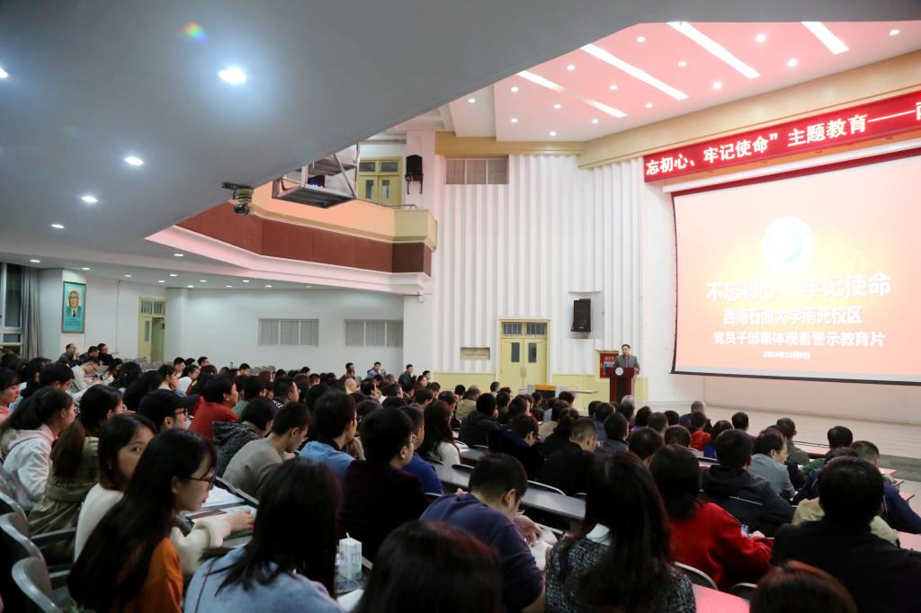 為扎實(shí)推進(jìn)“不忘初心、牢記使命”主題教育,10月8日、9日,南充校區(qū)組織全體師生黨員集體觀看了《我和我的祖國》愛國勵(lì)志電影和警示教育片,以激發(fā)師生愛國情懷,增強(qiáng)師生廉潔意識(shí)。