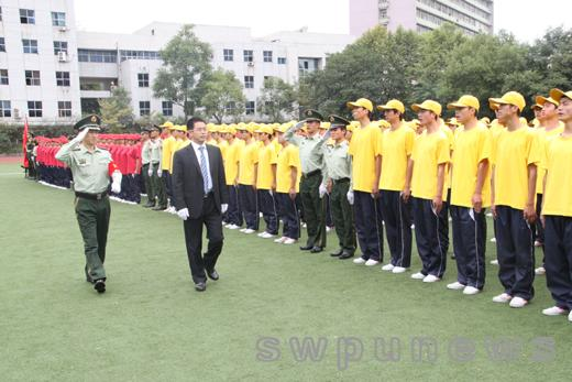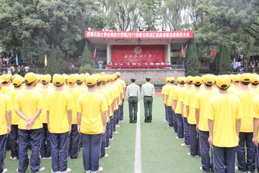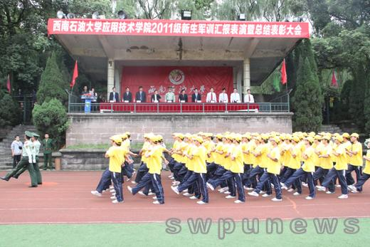 9月29日下午,應用技術學院2011級新生軍訓匯報表演暨總結表彰大會在南充校區田徑運動場舉行。校長杜志敏,副校長、南充校區管委會主任趙正文出席了大會。會議由應用技術學院黨委副書記、軍訓團政委鄧洪波主持。