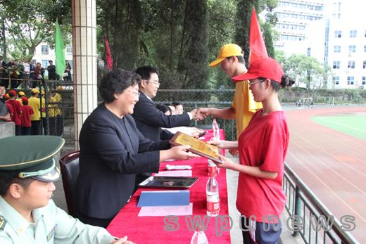 匯報表演結束后,應用技術學院黨委副書記、軍訓團團長王勝軍作了軍訓總結報告,應用技術學院黨委書記肖國民宣讀了《關于表彰先進集體和先進個人的決定》,杜志敏、趙正文等為軍訓中的先進集體和個人頒了獎。