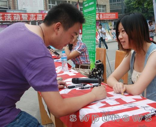 同學們在了解環保的同時,通過橫幅簽名,樹立環保意識,“簽名不只是一種形式,更是對自己的承諾,”2009級應化專業的楊露認為,通過簽名,讓自己樹立起環保意識,督促自己從身邊小事做起,從而積極踐行環保理念。