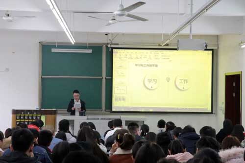 王成杰同學就“溝通能力”、“學習與工作的平衡”、“處事公平公正”、“模范作用”四個方面進行分享,指出學生應“幸福地生活”,并提出“完整的人生”這一觀點。郭長遠同學從“格局決定思想,思想決定道路“為出發點發表對學生干部的理解體會,分享自身經歷,交流心得感悟。