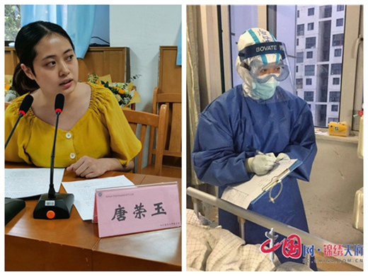 22歲的唐榮玉是年齡最小的,她樸實(shí)地說,我們接手的是超常量的繁雜的護(hù)理工作,為半身不遂并失語的腹瀉患者更換尿不濕,為生活不能自理的患者翻身。她說:“四川第一批醫(yī)療隊(duì)一位黨員說“若有戰(zhàn),請用我!”,這句話使我對共產(chǎn)黨員這個(gè)稱謂更加向往。我在抗疫過程中真切感受到了黨員同志的榜樣力量,3月12日我成為了預(yù)備黨員,站在黨旗下宣誓時(shí)身體都在輕輕地顫抖。