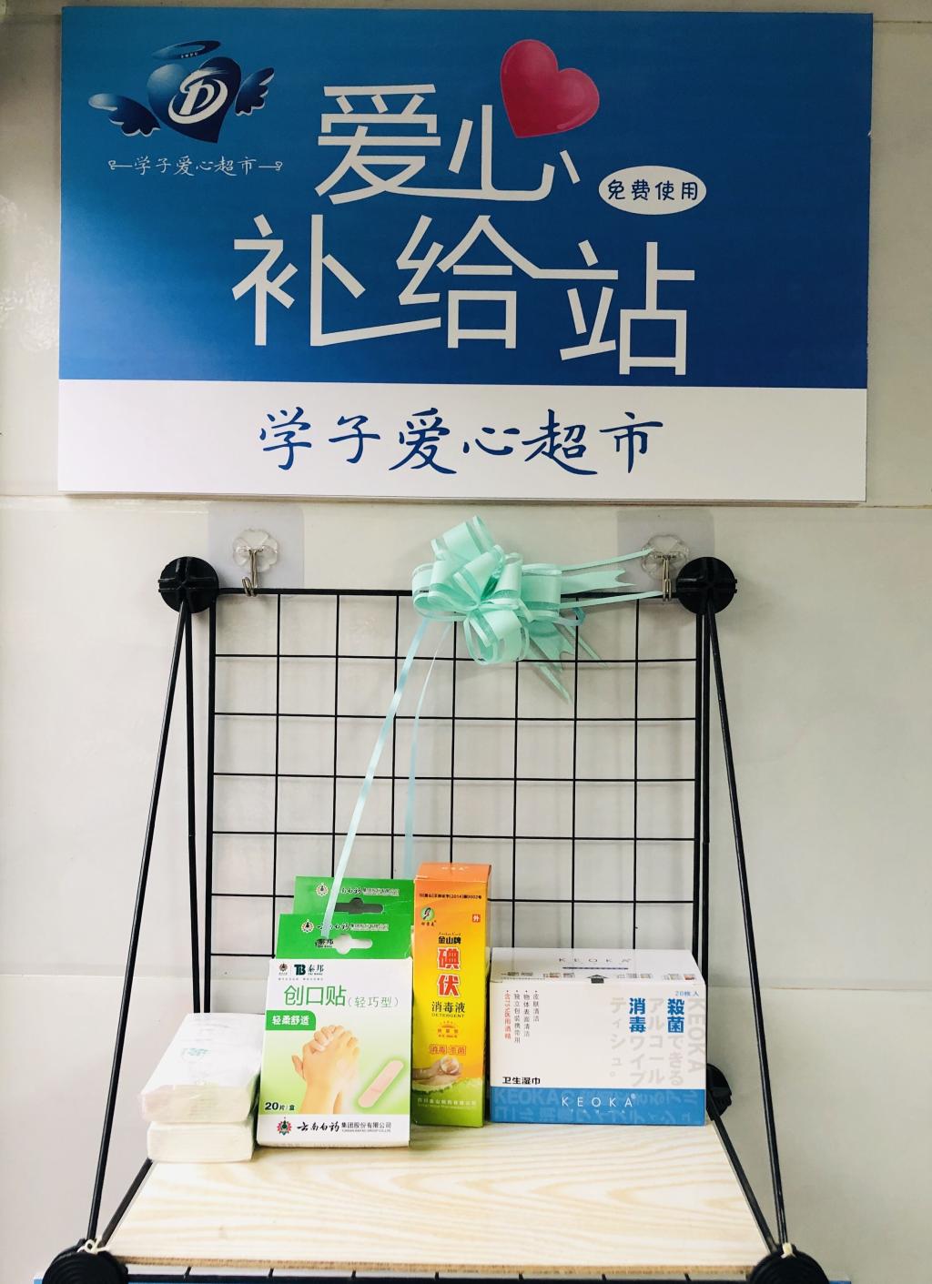 學子愛心超市是傳遞愛心的橋梁,是孕育弘揚校園“愛心文化”的重要基地。為方便學生應急,學子愛心超市專門設立了愛心補給站,給同學們提供酒精、碘伏、邦迪、花露水和打氣筒等應急物品。為解決學校暫無固定安全失物招領存放處的問題,學子愛心超市設立失物招領處,店員張利平說:“學生可以在西柚資助公眾號中查詢自己的遺失物品,這樣既能為同學們提供便利,又可以夠保障同學們的信息安全。”