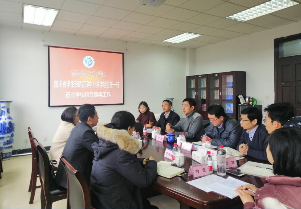 首先,蒲勇部長(zhǎng)對(duì)蘇宇明主任一行來(lái)我校調(diào)研學(xué)生資助工作表示誠(chéng)摯的歡迎。蘇宇明主任簡(jiǎn)明扼要地提出了調(diào)研要求,以期多層次、全方位地了解我校學(xué)生資助工作情況。根據(jù)調(diào)研要求,張浩副部長(zhǎng)從機(jī)構(gòu)隊(duì)伍建設(shè)情況、制度建立完善情況、檔案留存管理情況、對(duì)學(xué)院的監(jiān)督管理情況、學(xué)生資助政策落實(shí)情況、資助育人情況、存在的問(wèn)題及下一步打算等方面詳細(xì)匯報(bào)了我校學(xué)生資助工作。四川省學(xué)生資助管理中心領(lǐng)導(dǎo)在認(rèn)真聽(tīng)取匯報(bào)之后給出了相關(guān)的意見(jiàn)和建議,以有效促進(jìn)我校學(xué)生資助工作進(jìn)一步發(fā)展。