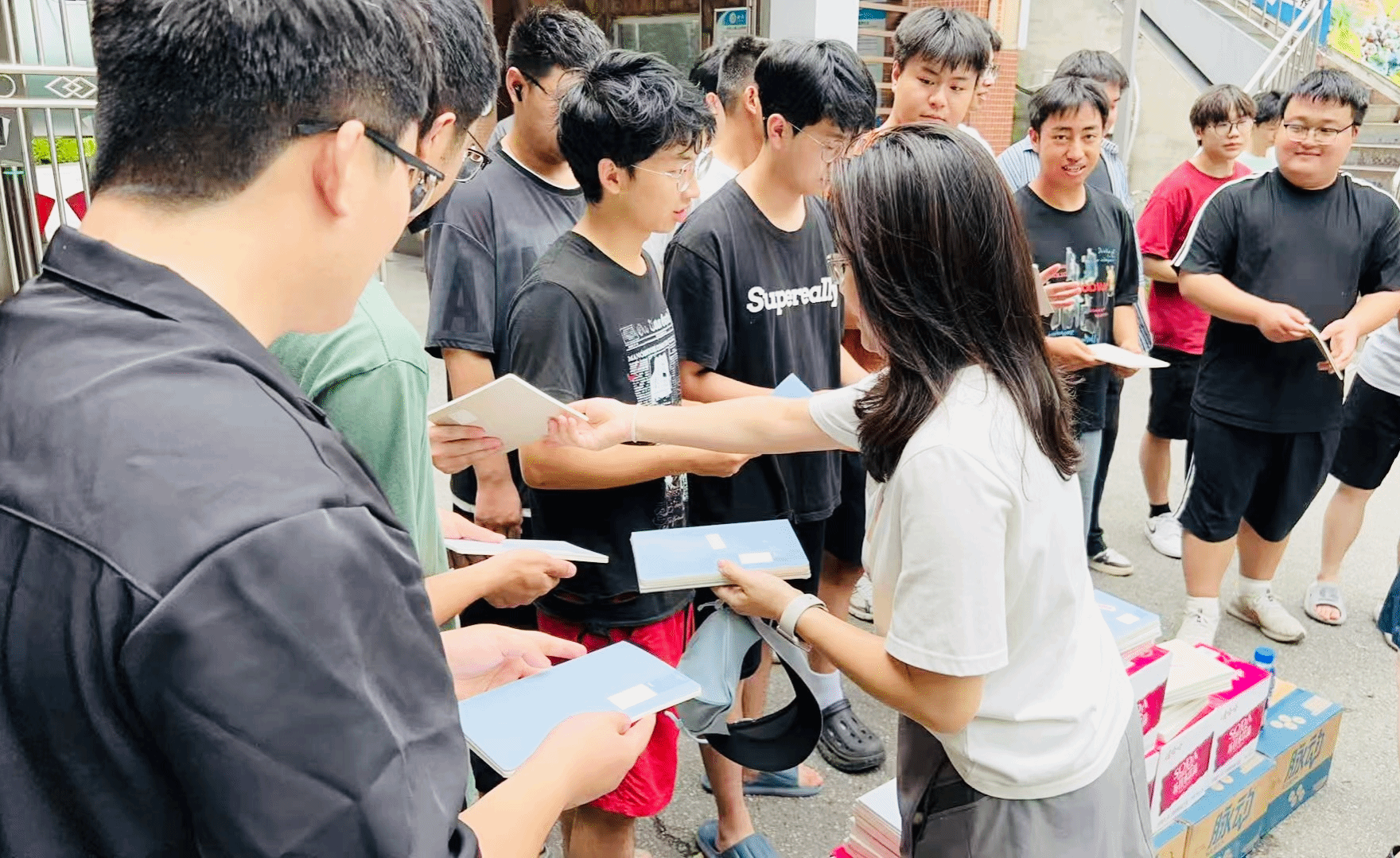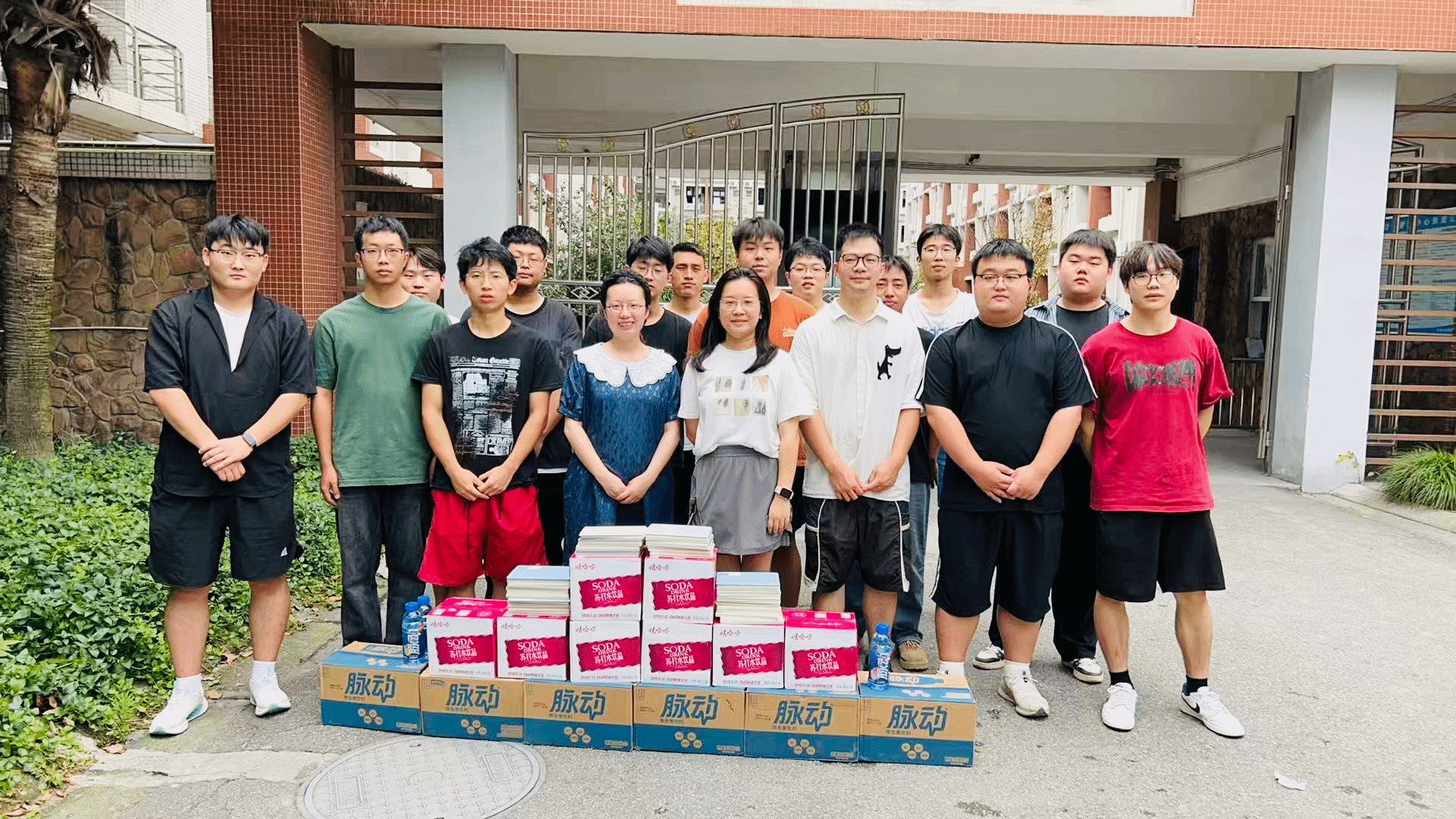 “最近復習進度如何?”“實習是否順利?”“還有什么具體困難?”在遞上慰問物品的同時,輔導員們與學生們傾心交流,詳細詢問他們留校期間的備考規劃和實習進展,細致體察學生們的實際需求和困難。隨后,輔導員將一份份承載著學院祝福的防暑降溫物品能量飲料和筆記本送至同學們手中。