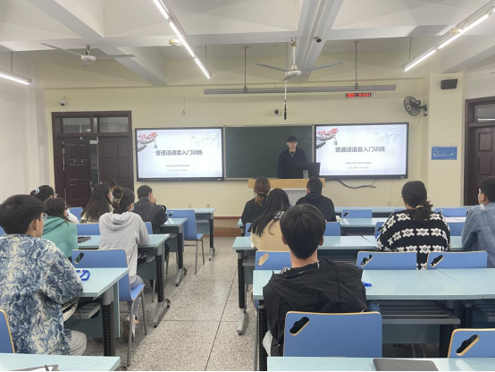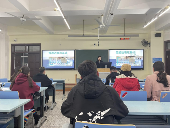 本期訓(xùn)練班共10個(gè)課時(shí),1個(gè)課時(shí)為120分鐘,其中理論教學(xué)4課時(shí)、集訓(xùn)實(shí)訓(xùn)4課時(shí)、測(cè)評(píng)反饋2課時(shí),教學(xué)過(guò)程以普通話聽(tīng)、說(shuō)能力強(qiáng)化訓(xùn)練為主,普通話語(yǔ)音基礎(chǔ)理論知識(shí)、語(yǔ)言學(xué)相關(guān)知識(shí)的教學(xué)為輔,并配合開(kāi)展口語(yǔ)發(fā)音練習(xí)、朗讀、有稿演講等生動(dòng)活潑的教學(xué)形式進(jìn)行。藝術(shù)學(xué)院趙邦宇和人事處王瑞擔(dān)任本期帶訓(xùn)導(dǎo)師。
