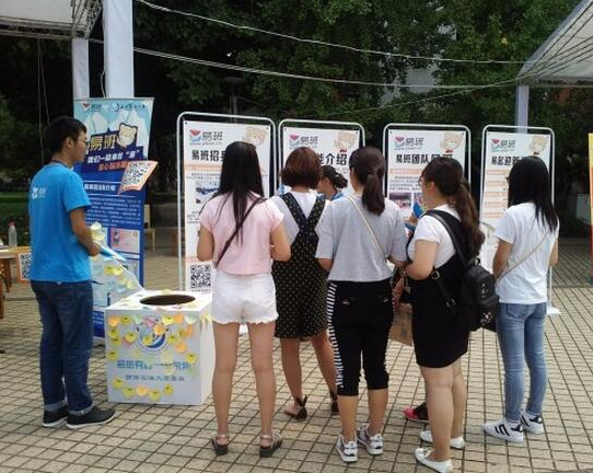 賣萌可愛的易班熊,一目了然的宣傳板,簡潔精致的大禮包,情深意切的規劃卡……9月7至10日學校迎新現場設立了“產品宣傳區”、“互動體驗區”和“人才招募區”,吸引了眾多學生下載、注冊、使用易班,展示了易班不一般的能耐。