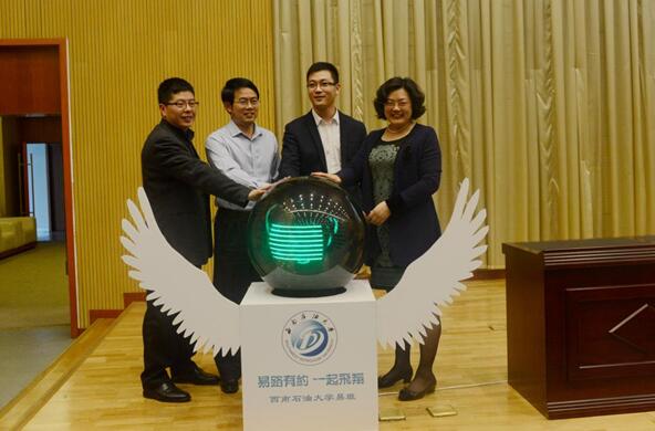 啟動儀式上,陳小紅、盛彥廣、徐元彬、趙正文共同開啟了“易路有約,一起飛翔”啟動球,陳小紅和盛彥廣共同為西南石油大學易班發展中心授牌。