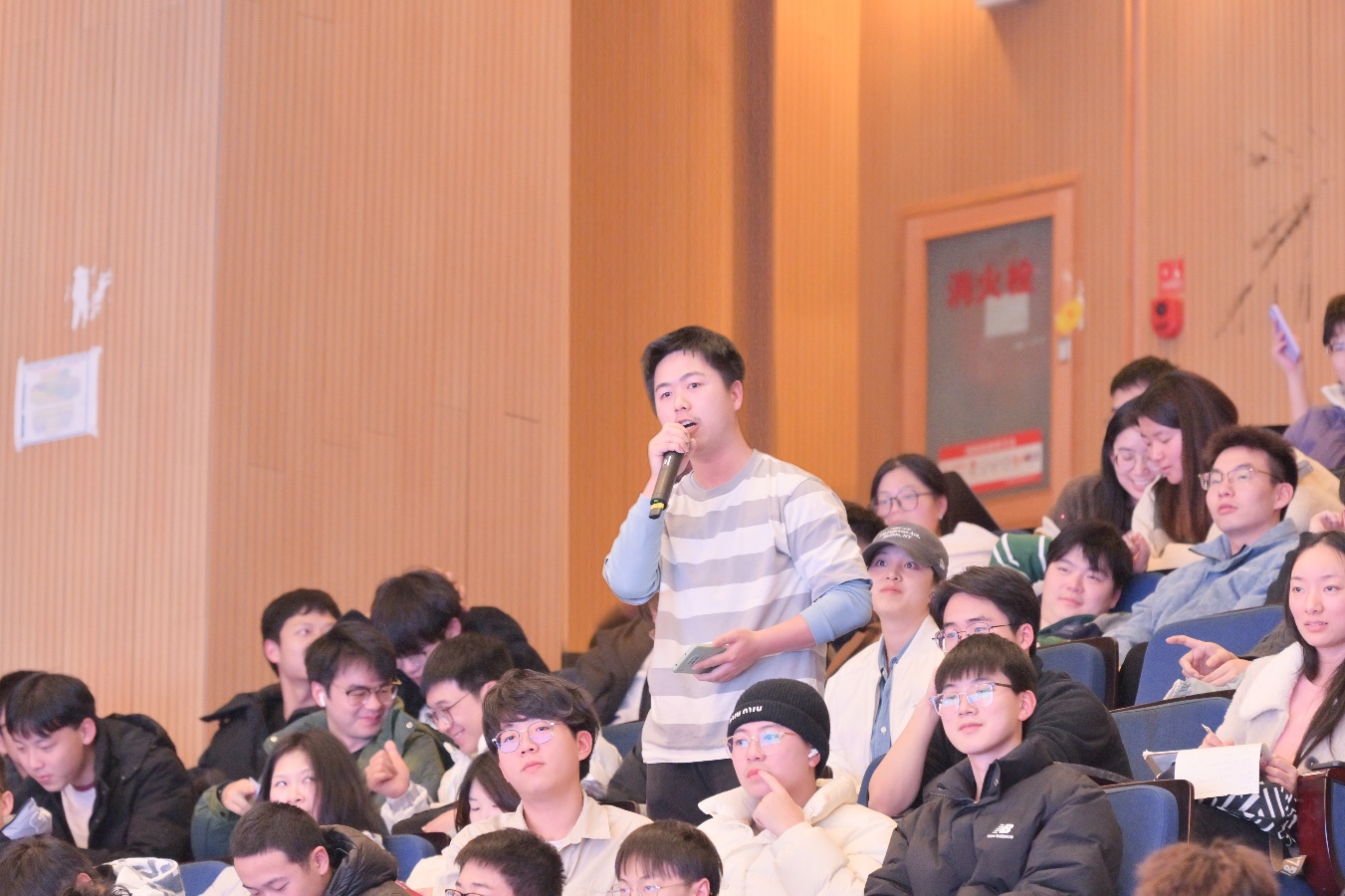 互動環(huán)節(jié),當現(xiàn)場觀眾問到“怎么才能成為一個對企業(yè)有價值的人”時,羅林分享到,每個人都應肯定自身價值,也應腳踏實地,從基層做起,穩(wěn)步提升成長。當同學犀利提問,“安東集團如何為畢業(yè)生提供舒適的就業(yè)環(huán)境,緩解員工焦慮情緒”時,羅林以自身的從容不迫回應了問題本身,他認為心態(tài)決定環(huán)境,應保持積極快樂的心態(tài)面對工作和就業(yè)。同學們踴躍互動,羅林一一細心解答。