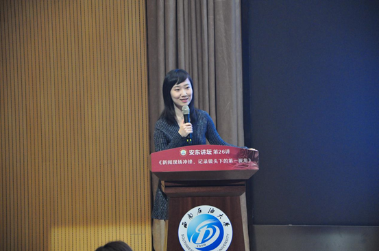 她說到:“作為一名記者,我們應本著不做假新聞、堅守行業操守等原則踏實本分采訪。媒體對新聞事件的了解,沖在現場前鋒的一定是記者,重中之重就是要抓住鏡頭下的第一視角,我們掌握著新聞事件以外的人所了解的第一手資料,而我們隨時面臨著許多突發情況,這就相當考驗記者的隨機應變能力。”最后她贈予我們一句臺訓:不到最后一刻不放棄,到了最后一刻更不放棄。