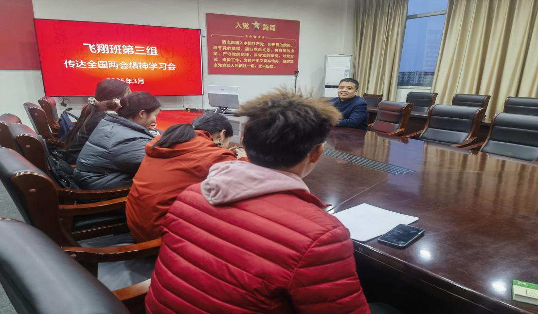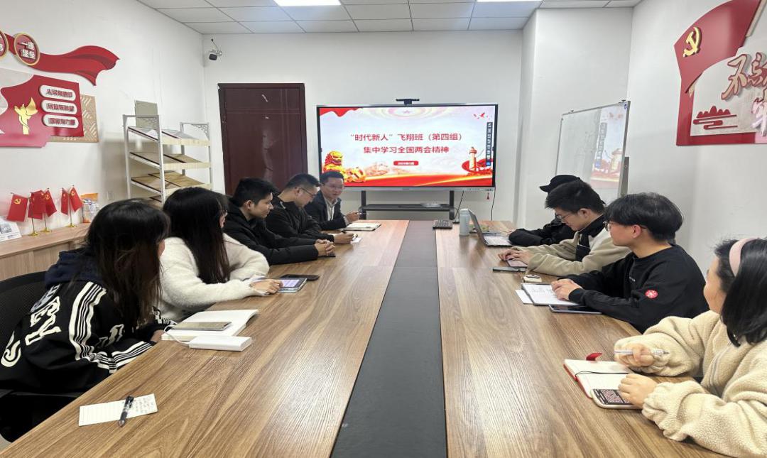 3月16日,飛翔班第2組在雙創大樓四樓B區會議區召開學習貫徹全會精神專題研討會。指導老師蘭冰芯及小組9名成員參與,圍繞“聚焦兩會精神,凝聚青春力量”主題展開研討。組長邢智杰系統梳理了本年度政府工作報告核心內容,蘭冰芯重點解讀“新質生產力”“高質量發展”等政策熱詞,小組成員通過“理論研讀+案例剖析”形式展開交流學習,建立了政策認知框架,學習效果顯著。