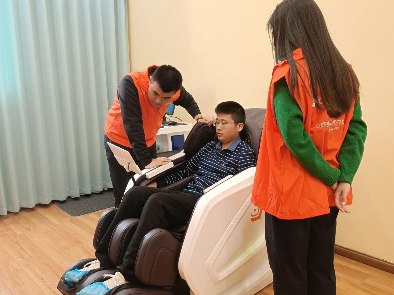 劉昕炎指導(dǎo)助理操作并體驗HRV音樂放松設(shè)備