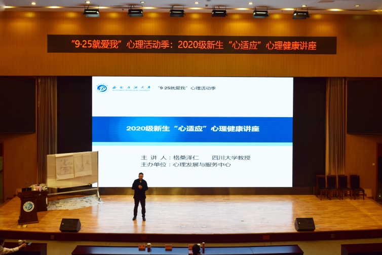 為了更好地幫助大一新生構建良好的心理狀態,順利完成中學到大學的心理適應,10月15日下午,由心理發展與服務中心主辦的2020級新生“心適應”心理健康講座在圖書館學術報告廳順利舉行,講座邀請了四川大學教授格桑澤仁圍繞大一新生的心理健康困擾進行了講解,全體2020級新生通過現場觀看和視頻直播的方式參與了此次講座。心理中心主任方可、副主任陳俐宏出席了本次講座。心理健康教研室主任翟瑋煒主持了本次講座。