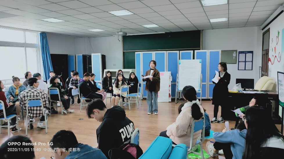 本期培訓主要分為理論學習和討論改進兩個環(huán)節(jié),活動伊始,劉成寧同學運用上期培訓所學的心理團輔知識帶領(lǐng)大家進行了熱身和分組,在歡樂的游戲中帶動了培訓現(xiàn)場的氛圍,讓同學們以更加飽滿的精神狀態(tài)投身到之后的培訓活動當中。