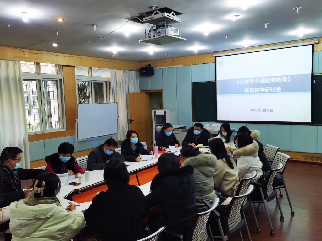 1月12日上午,心理發展與服務中心在博學樓A101召開了《大學生心理健康教育》教育教學研討會。中心主任方可、心理健康教研室主任翟瑋煒及2020年秋季學期心理健康教育教學全體課程教師參加了本次會議。