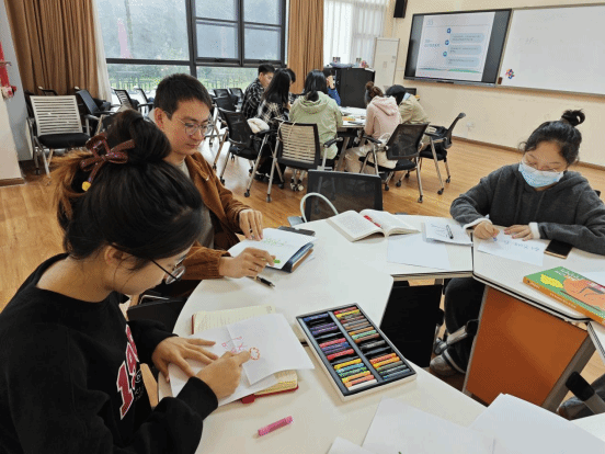 理論講解后,進入到第二環節:沉浸體驗,繪畫中看見自我與他人。在沉浸體驗環節,輔導員們親身體驗了“姓名名片設計”和“一分鐘傳畫”兩項活動。從個人創作的自我表達到集體傳畫中的互動反應,這些活動為觀察了解同伴提供了生動的微觀窗口。