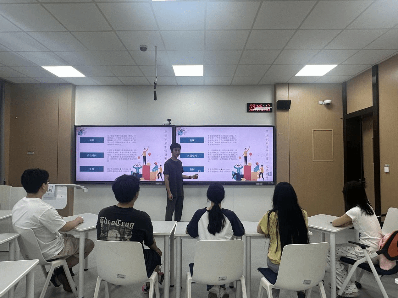 在小組打卡學(xué)習(xí)階段,學(xué)生組成學(xué)習(xí)小組,每日開展單詞早讀活動。通過互相抽背詞匯、分享記憶方法等,營造了良好的學(xué)習(xí)氛圍。活動還特別策劃了“考研英語復(fù)習(xí)規(guī)劃與備考策略”公益講座,講座老師結(jié)合近年考研英語的難度變化和命題趨勢,系統(tǒng)講解考研英語題型,并針對學(xué)生常見問題進(jìn)行現(xiàn)場答疑。在經(jīng)驗分享環(huán)節(jié),考研上岸的優(yōu)秀畢業(yè)生面向?qū)W生開展經(jīng)驗分享,從時間管理、復(fù)習(xí)策略、心理調(diào)適等方面分享實戰(zhàn)經(jīng)驗,為備考學(xué)子提供寶貴建議。