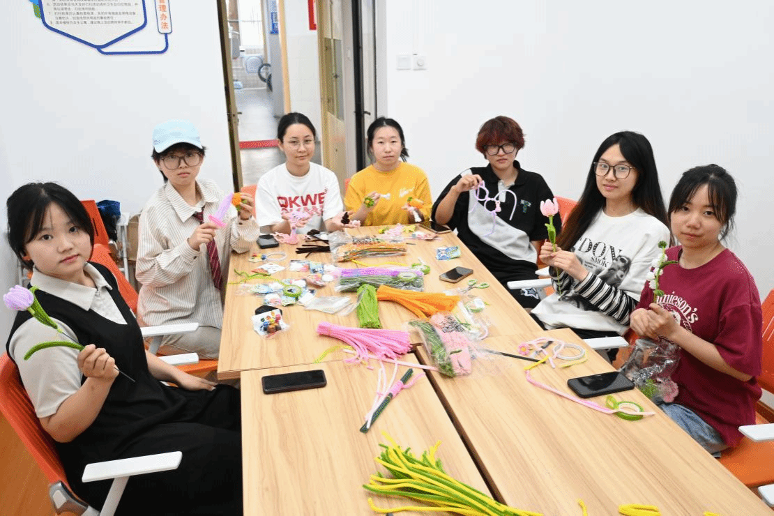 “指尖綻放,扭出心花”活動現場,在手工協會成員的耐心指導下,同學們充分發揮奇思妙想,將普通的原材料幻化成一朵朵嬌艷欲滴的玫瑰、郁金香。在勾勒色彩、塑造造型的過程中,讓焦慮情緒在指尖的溫度中逐漸消融,在藝術創作中尋得內心的寧靜與放松。